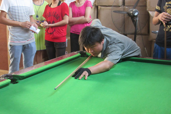 此次臺球比賽共有21人參加,圖為行星球磨機制造組小焦