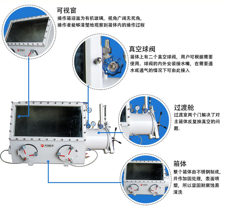 三、天創粉末不銹鋼真空手套箱特點
